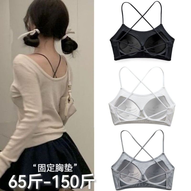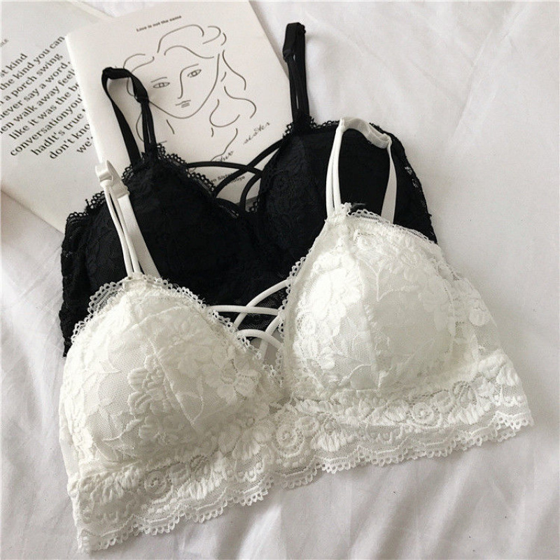 韩版蕾丝前交叉性感抹胸内衣无钢圈聚拢裹胸网红少女文胸学生内搭