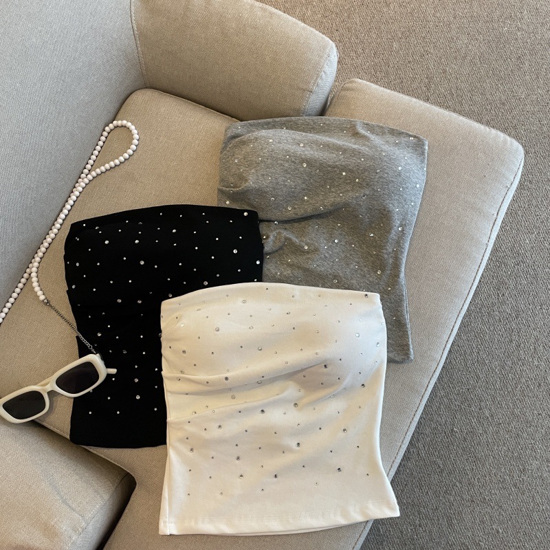 フランスのドーパミンピュア欲望春服、背の低い女性用、セクシーなチューブトップ、ホットダイヤモンド、スリムフィット、年齢軽減ボトリングシャツ、女性用