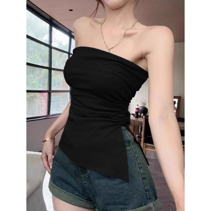 セクシーなチューブトップアウターウェア夏のノースリーブベスト女性用、不規則なスリットウエスト、インナーレイヤリング、胸巻きトップ