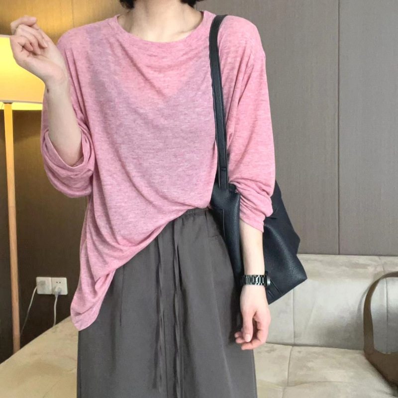 香港風の薄いタイプの日焼け止めのブラウスのtシャツの女性の夏の2025新型の爆発の純な普通のタイプのゆったりした長袖の上着