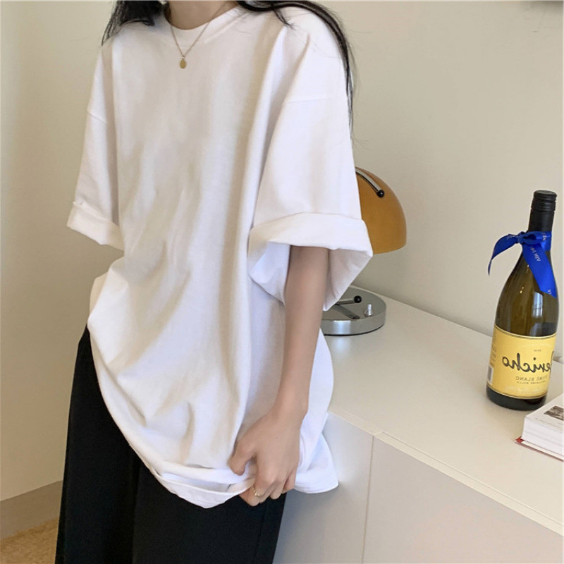 綿 100% ホワイトルーズ半袖 Tシャツ女性の春服 2025 新しい夏無地底インナートップ