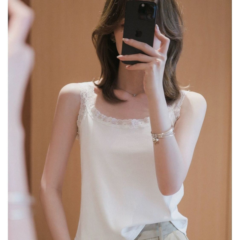 春夏のアイスシルクレースキャミソールレディースゆったり大きいサイズアウターウェアインナーレイヤリングシャツノースリーブスレッドベストトレンディ