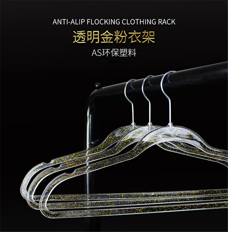 プラスチックの金粉の服の棚の滑り止めの跡のない服はアクリルの服を掛けて服の店の専用の透明なハンガーを支えて服を掛けます。