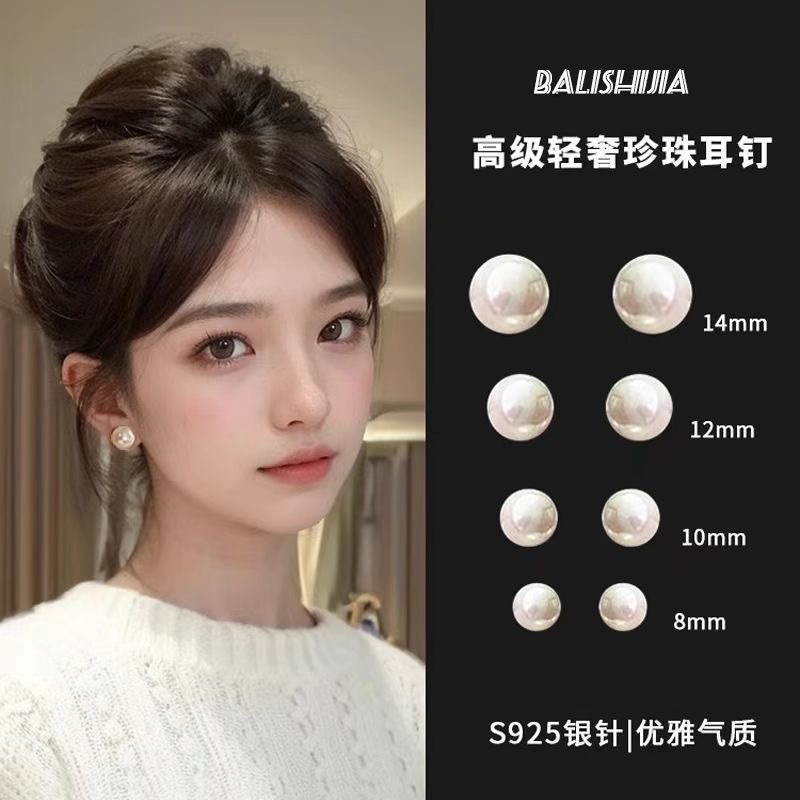 925 シルバー針イヤリング新しい大きな真珠のイヤリング女性のためのライト高級ハイエンドニッチレトロな気質優しいイヤリング