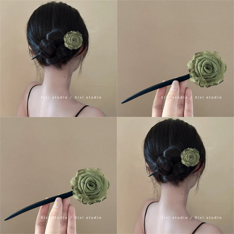 新しい中国風のメッシュフラワー古代スタイルの木製ヘアピン女性のためのハイエンド漢服古代衣装後頭部ヘアピンヘッドアクセサリー