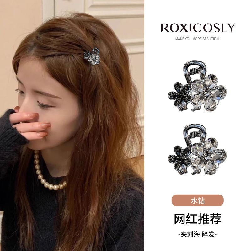 高級前髪クリップ、ラインストーンフラワーヘアピン、女性用サイドクリップ、小さなグリッパークリップ、額の前髪、サイドヘアピン、ヘッドドレス
