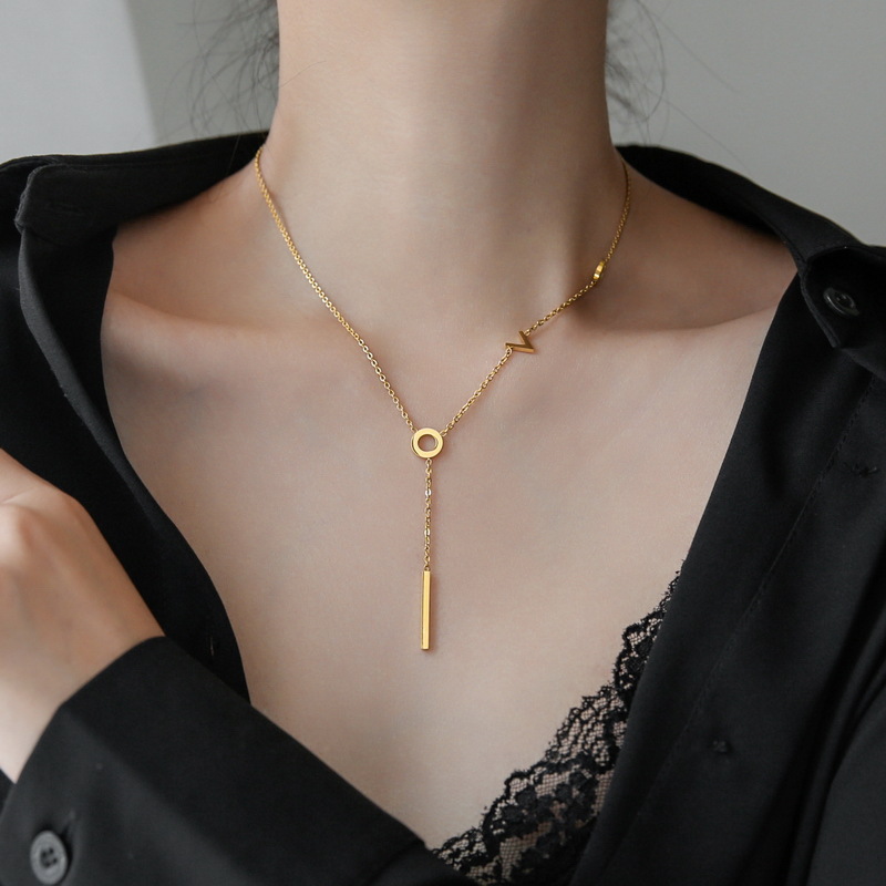 高級軽豪華LOVE流蘇ネックレス首鎖女夏鎖鎖シンプル小衆毛衣鎖色落ちしないバレンタインデー