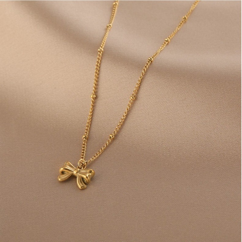 2024新型色落ちしないins鎖レトロ蝶結びネックレス