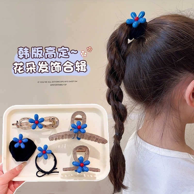 後頭部に優雅な気質と高価値のドーパミングリッパー帽子を備えた女性用の青い花のヘアピン、ハイエンドのサメクリップ