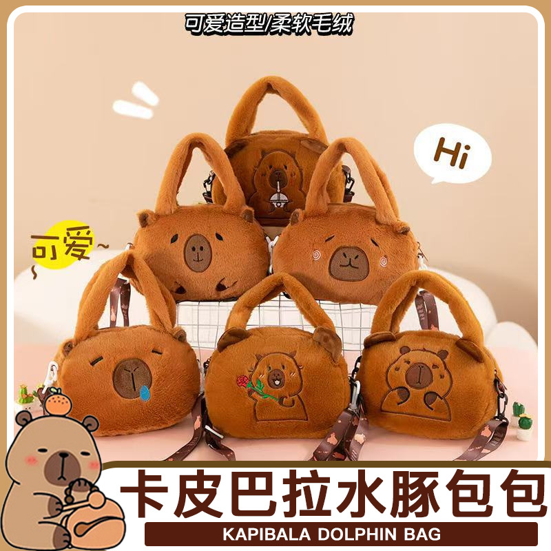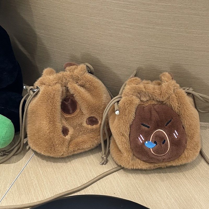 高颜値カピバラ斜めショルダーバッグかわいいカピバラの小包のぬいぐるみの束口バッグは軽くて洗練された旅行バッグです