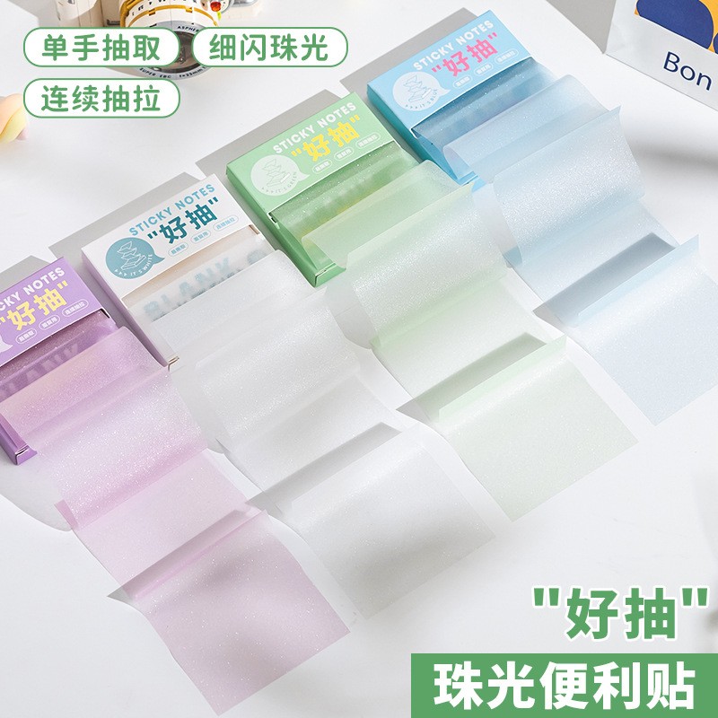 引き出しやすい真珠光沢のある透明な付箋、拡張可能な高価値n回付箋、箱入り、粘着メモ、学生のご褒美ギフト