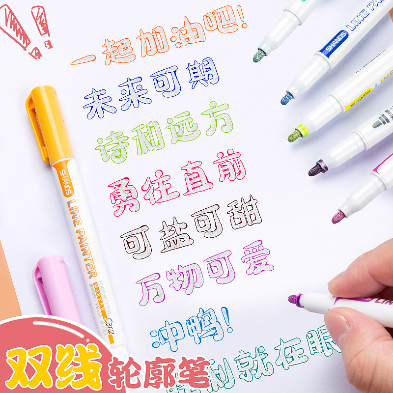 24色の二重線の輪郭のペンの2色の筆のフラッシュの筆の蛍光の筆の手帳の手は専用のinsの標識の筆のカラーペンを書き写します。