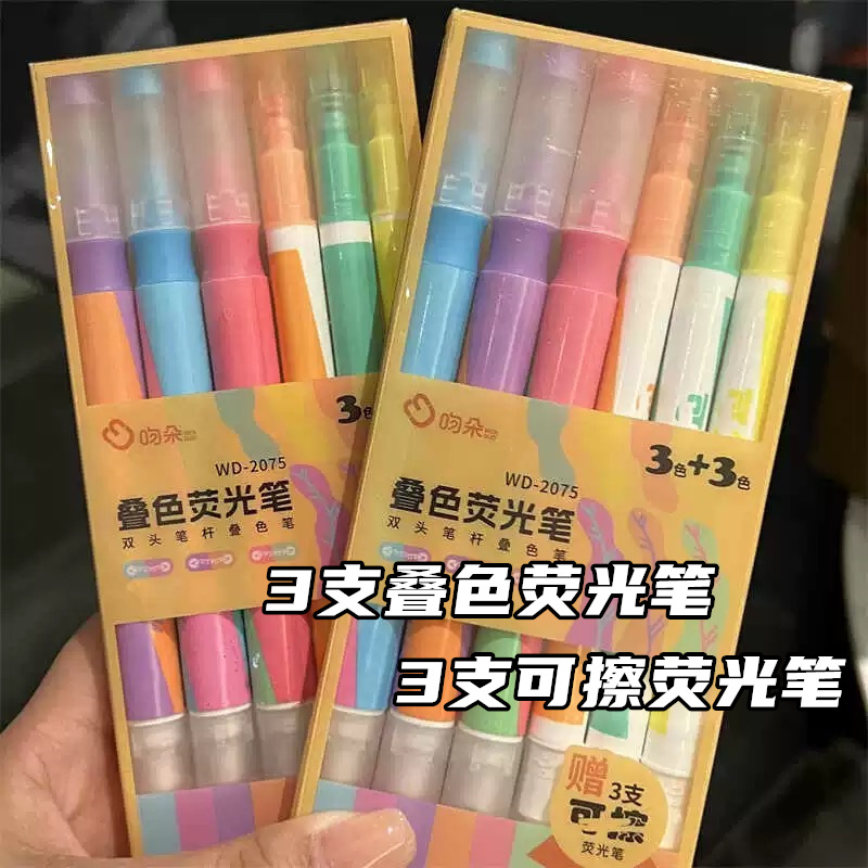 韓国版ダブルカラー蛍光ペン高颜値学生重点マークカラーペン防水マーカーペンは蛍光ペンを拭くことができます。