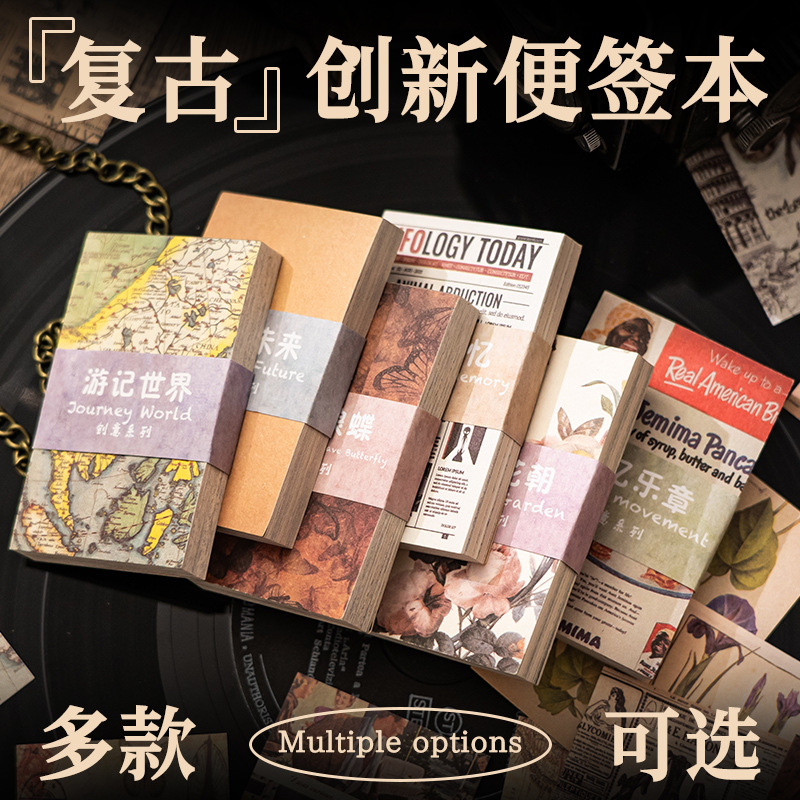 創意レトロ便本無粘り手帳インスタ風紙レトロ手帳植物動物装飾素材クロスボーダー