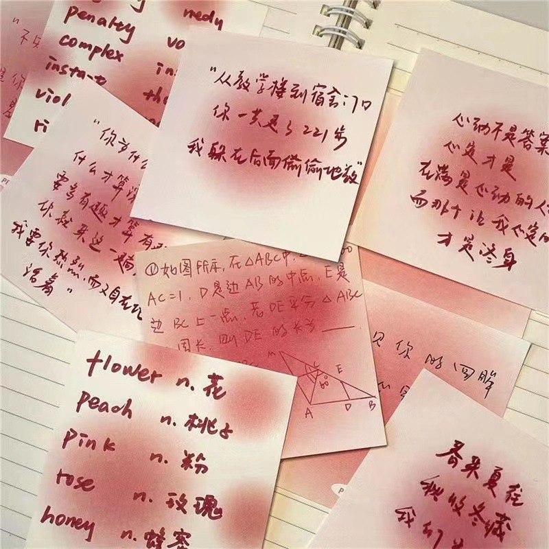 小紅の本の同じタイプの純欲風の少女の心の付箋の本のチークの光のグラデーションの付箋の手帳
