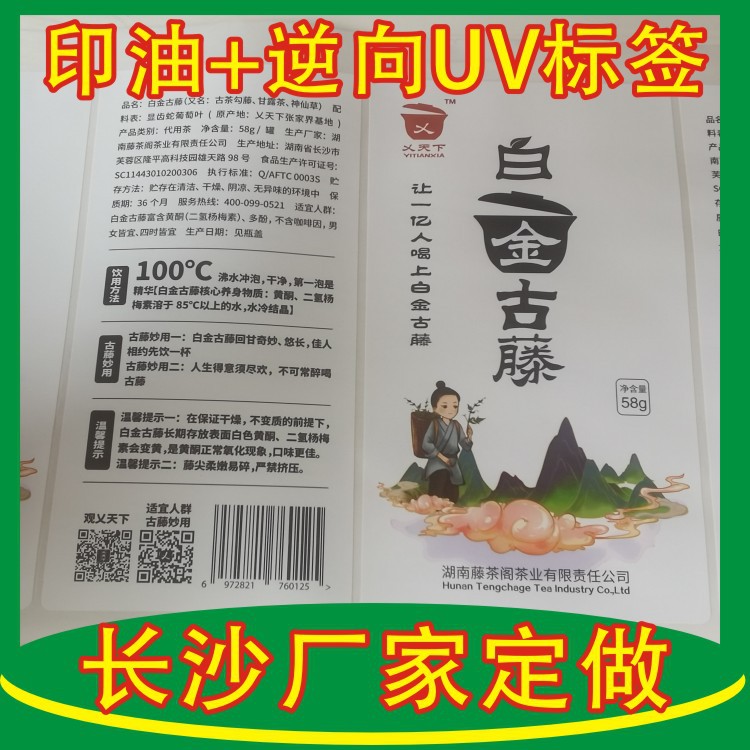 長沙輪転機ラベル印刷pp合成紙ラベル逆uv過油ラベル三防背ゴムボトルシール