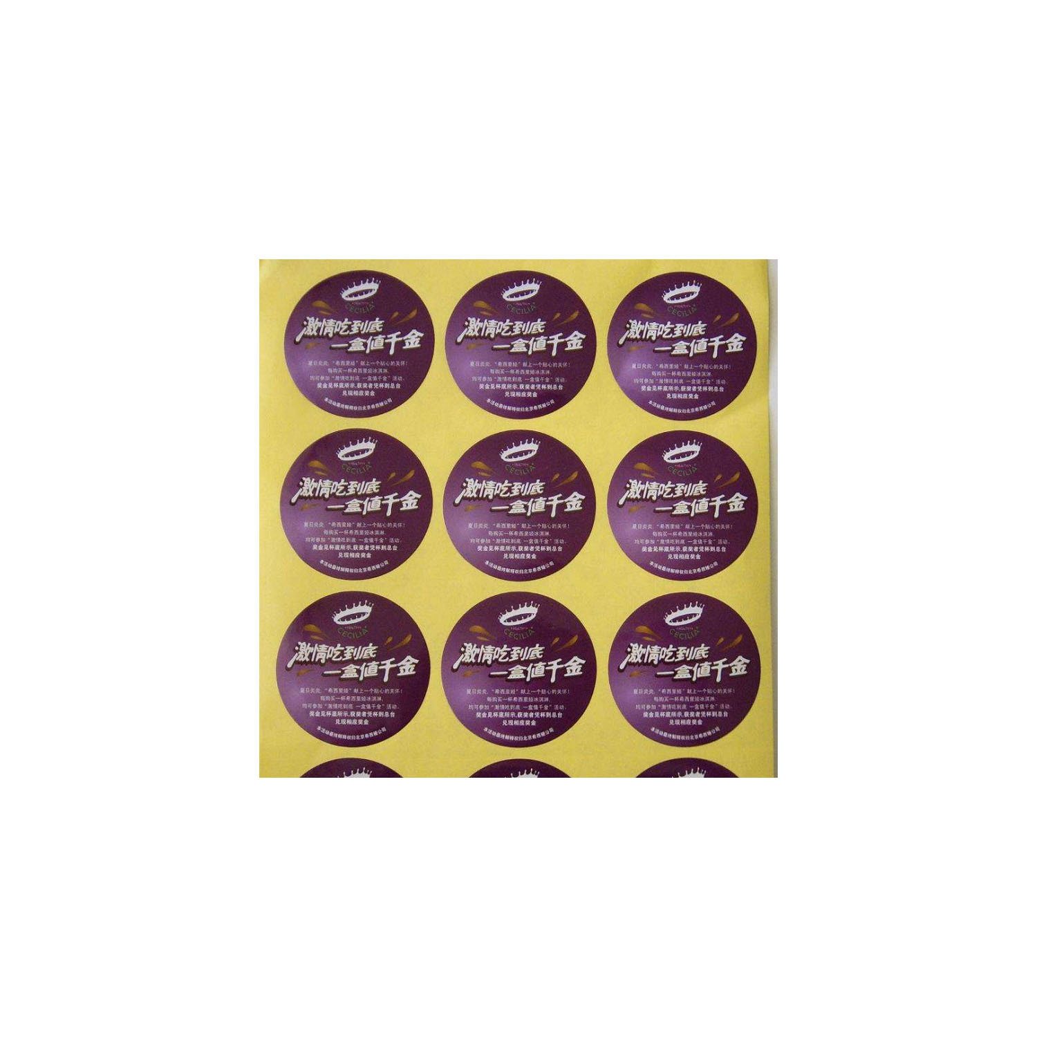張家界の鏡面のステッカーは銅の板紙の膜のラベルの贈り物のラベルを注文して果物のシールの小さい広告を貼ります。