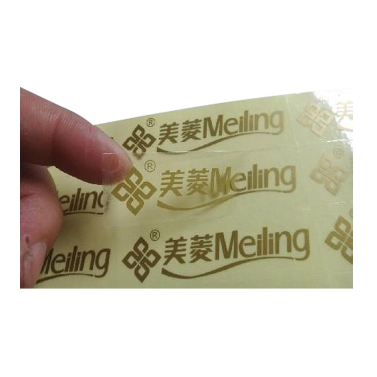 益陽印刷工場は美紋紙の商標の透明な材料を注文して銀のlogoの標識のpetをアイロンにかけます。