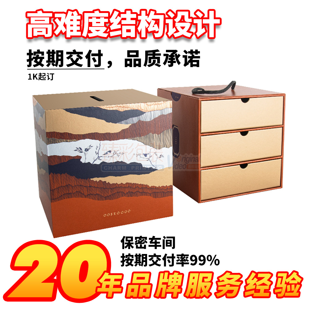 カスタム工場手持ちダブルドア引き出し箱包装箱6層特殊紙色箱創造性食品抽出ギフトボックス