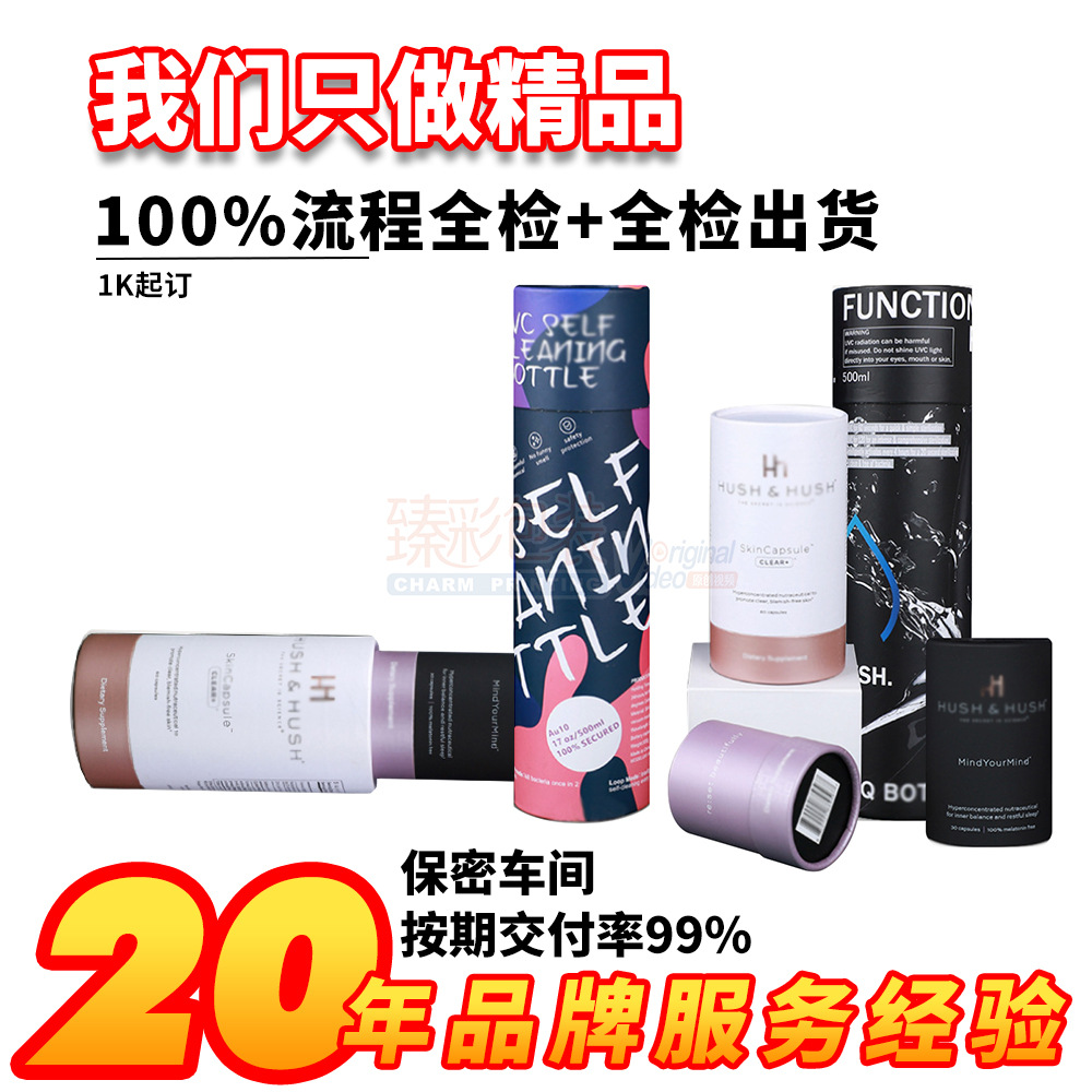 メーカー紙缶カスタム対外貿易黒カード健康食品円筒白カード箔押し食品紙缶カスタムロゴ