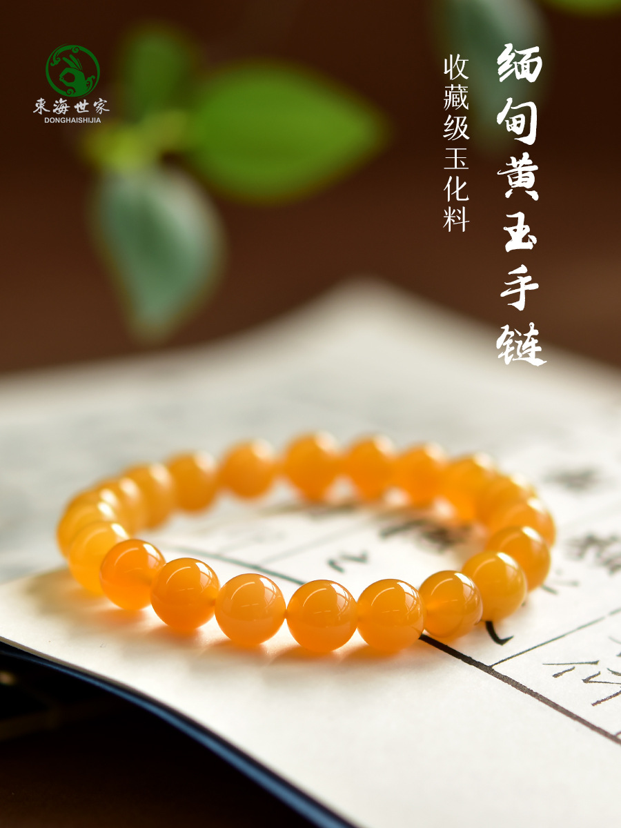 メーン黄手串女男東海水晶瑪瑙翡翠宝玉文は盤を遊んで散珠ミャンマー黄玉のブレスレットを遊びます。