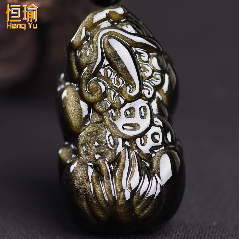 黒曜石三会豚鼠牛子丑水局ペンダント木局虎兎竜十二生肖マスコットネックレス男