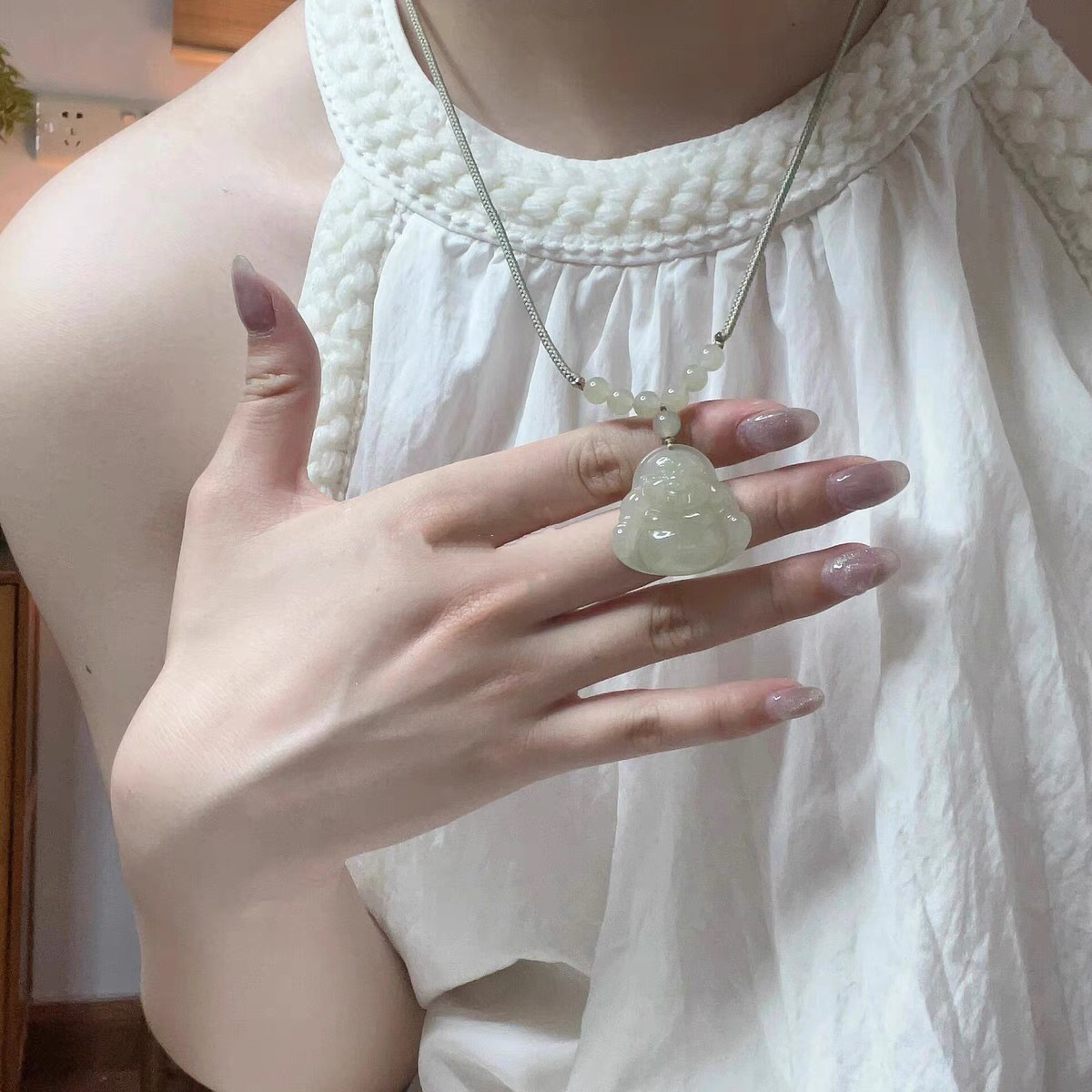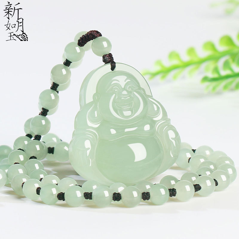 新品和田玉仏陀玉氷透笑仏ペンダント女性用晴水細料弥勒仏ペンダント玉佩ネックレス