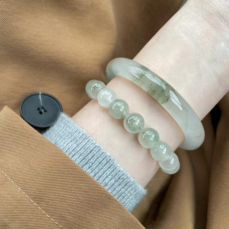 吉霊鳥氷透半山半水玉髄ブレスレット瑪瑙玉腕輪女性が親友の誕生日プレゼントをプレゼントします。