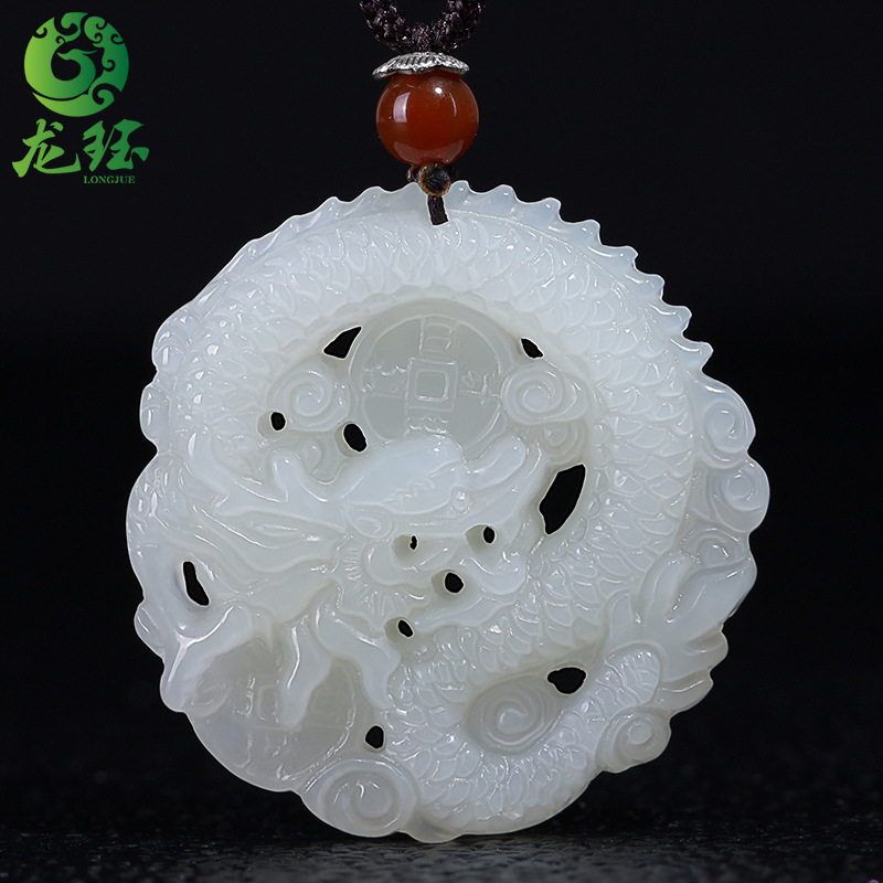 天然和田玉龍形ペンダント男女玉龍牌ネックレスペンダント円形生肖龍年竜玉ペンダント