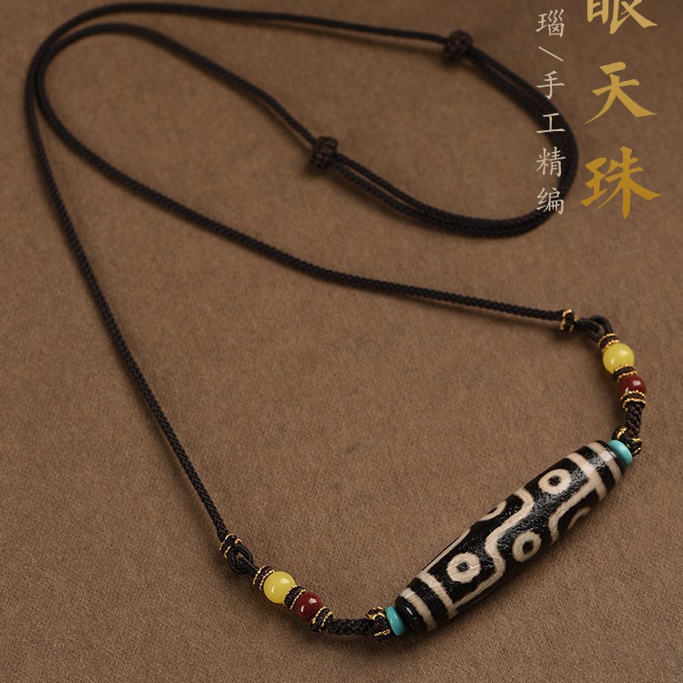 本命年瑪瑙九眼天珠鎖骨鎖男性女性夏ペンダントチベット式アクセサリー感2024年新作