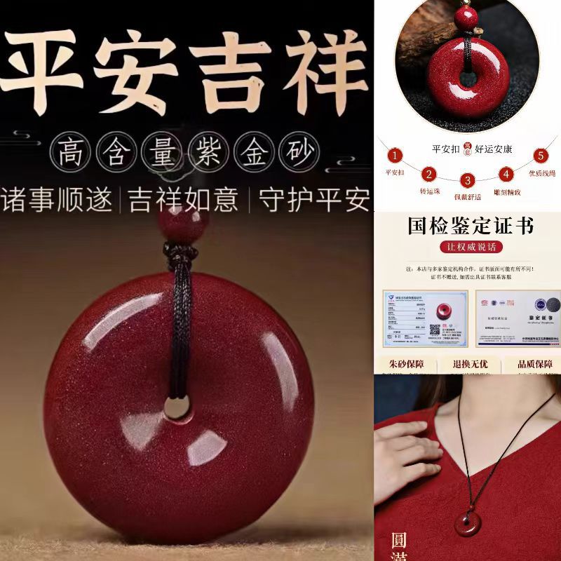 天然の本物の朱砂の平安はペンダントの女性のネックレスの男性の本命年の子供の記号のペンダントの赤いひものセーターのチェーンを掛けます。