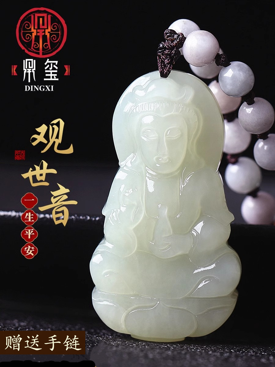 天然和田玉観音頭ペンダント男型女玉ペンダント白玉仏牌玉佩玉玉菩薩ネックレスアクセサリー