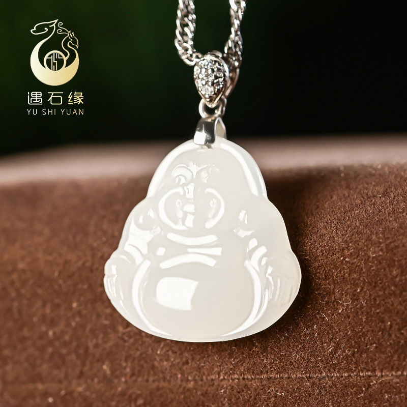 天然和田玉仏公ペンダント925銀モザイク弥勒仏の女性の鎖骨玉ペンダントネックレス