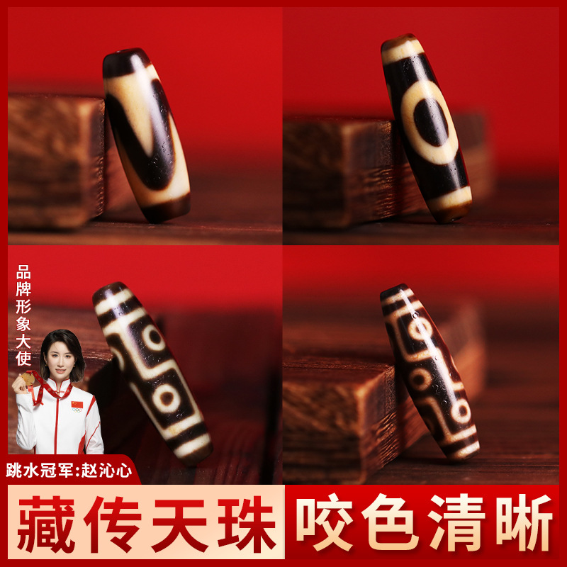 天珠天然チベット本物の手串男至純三眼九眼虎牙瑪瑙ペンダント鎖骨チェーンネックレス女性モデル