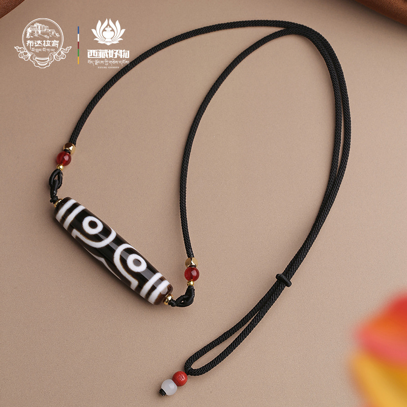 ポタラ宮三眼天珠ペンダントネックレス民族風チベット五眼九眼瑪瑙チェーン男女モデル