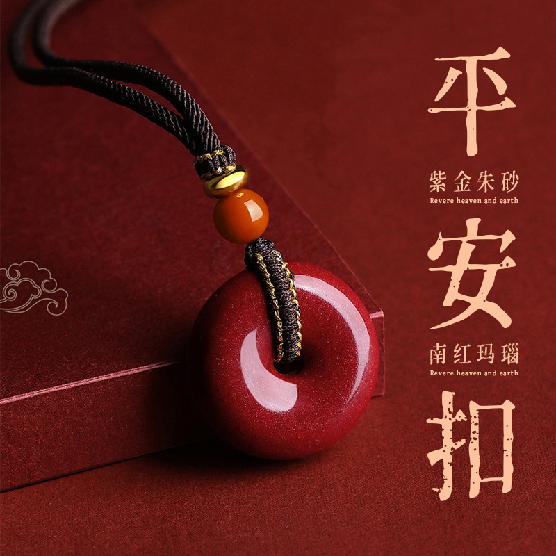 【保真】天然朱砂平安ボタンペンダントネックレス男性女性用平安ボタン