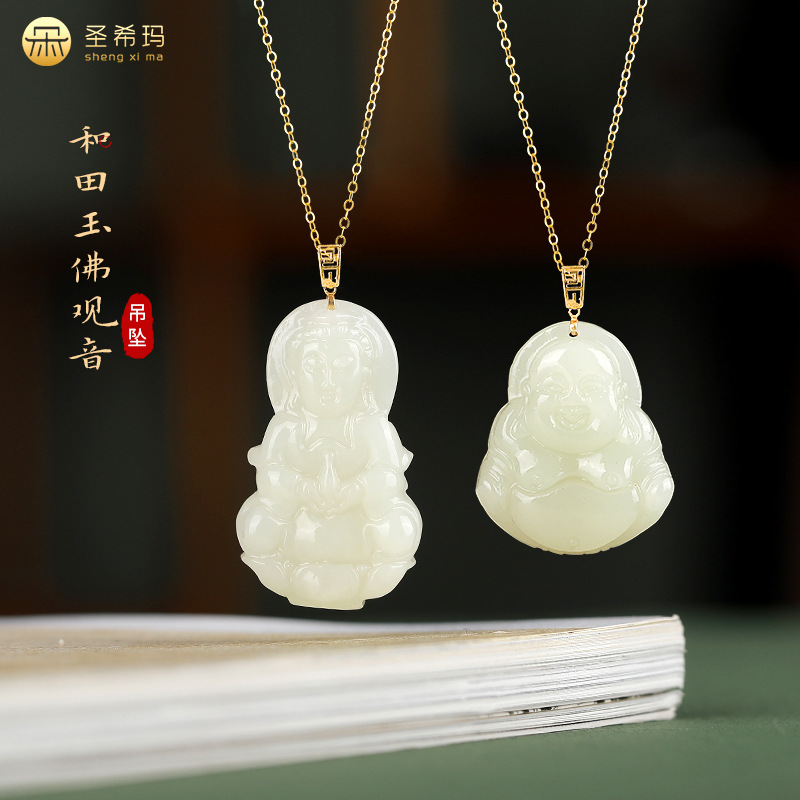 天然和田玉観音頭ペンダント男性玉ペンダント玉仏ペンダント笑仏玉ペンダントカップル玉ネックレス女性夏