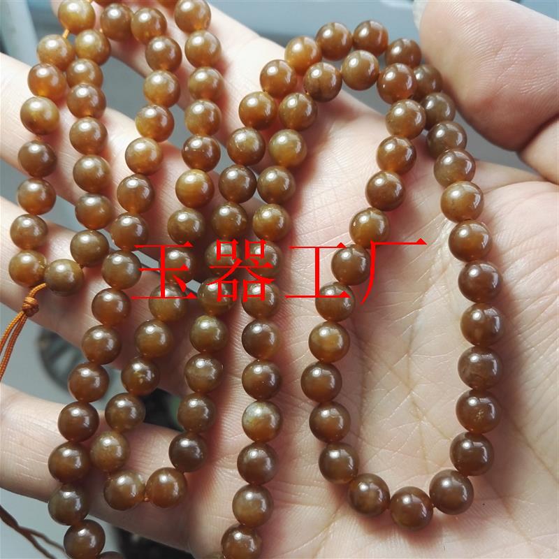 新疆と田玉とりあえず砂糖玉紅糖108個の仏珠の小さいボールのセーターのネックレスはひもを掛けます。