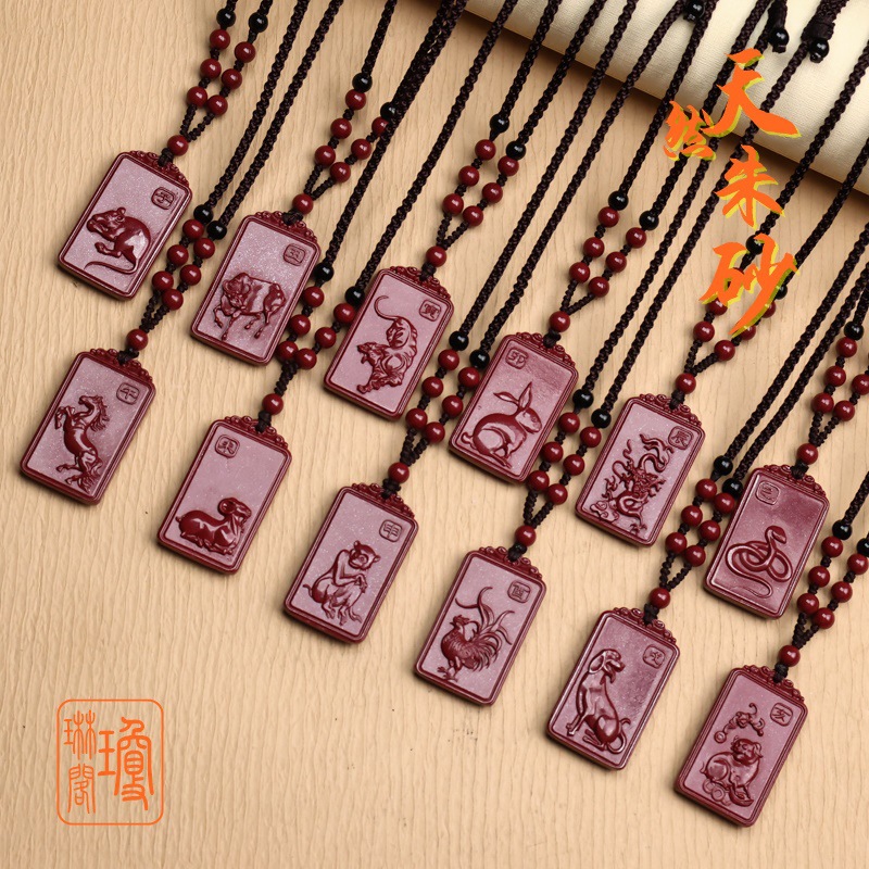 天然原鉱朱砂十二生肖ペンダント両面彫刻本命仏守護神符ペンダント証明書付き