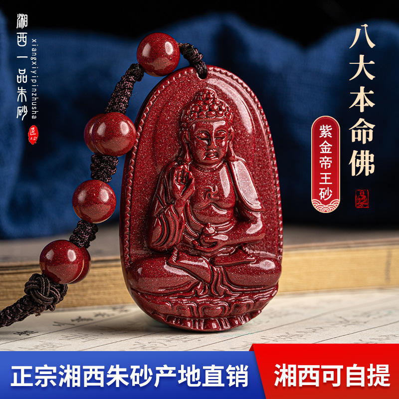 湘西新型天然原鉱高含有量朱砂紫金砂守護神プレゼント普賢菩薩仏男女ペンダント