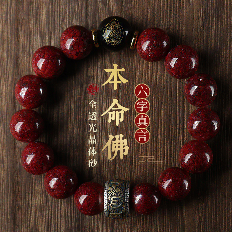 保真結晶朱砂手串カップル金龍年本命年ブレスレットプレゼント六字真言湘西辰砂