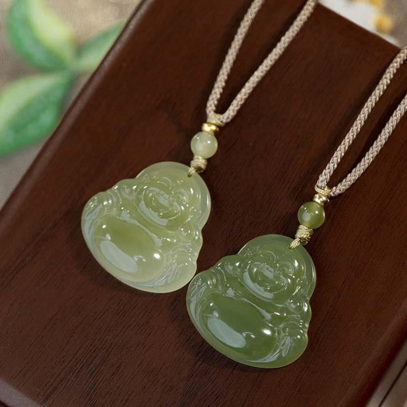 天然本物和田玉弥勒仏公玉ペンダント女性笑仏翡翠玉佩玉仏象眼ネックレス玉