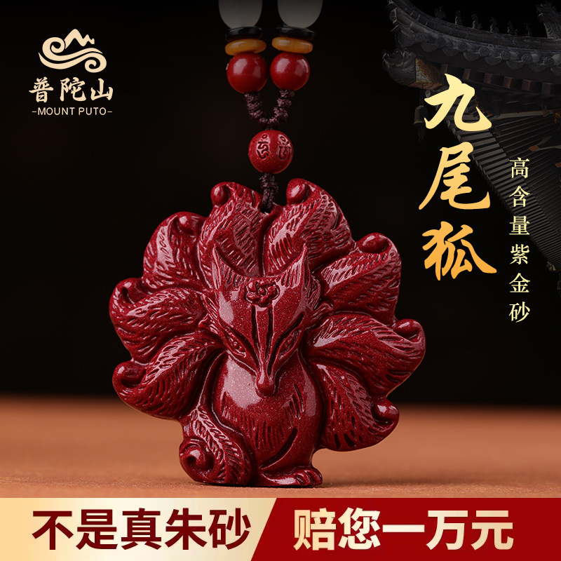 天然の朱砂九尾狐のペンダントの男性は桃の花のネックレスの女性を招きます。