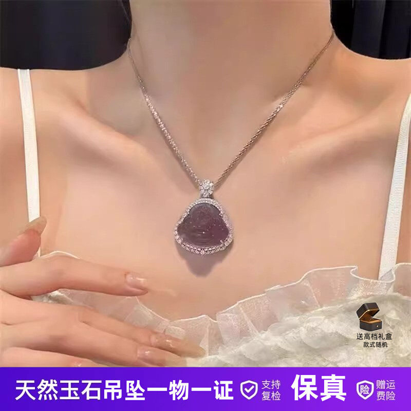 天然紫玉髄瑪瑙仏公ペンダント純銀ネックレス女性高氷弥勒仏小衆デザイン鎖骨チェーン