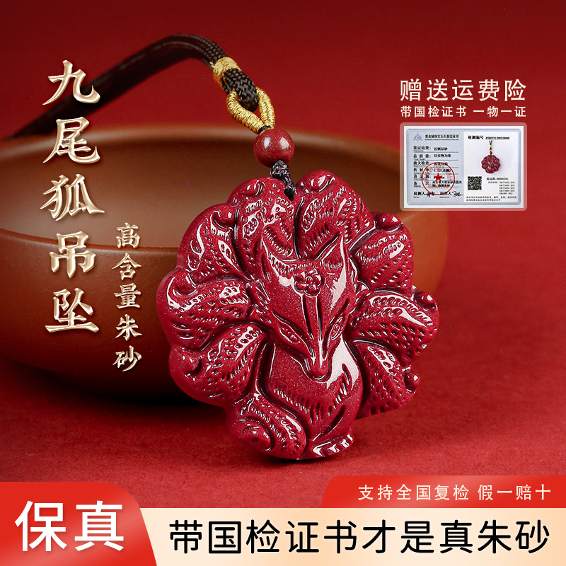 天然朱砂ペンダント男女本命年符紫金砂九尾狐ネックレス小狐毛衣チェーンペンダント