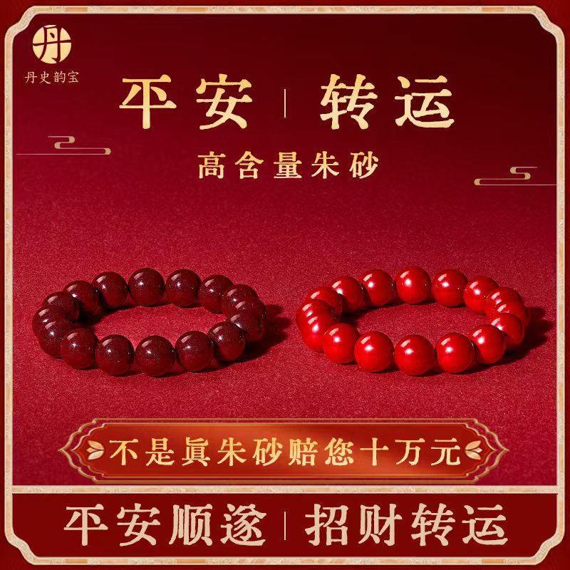 天然朱砂手串高含有量帝王砂赤紫金砂ブレスレット女本命年転運珠男性
