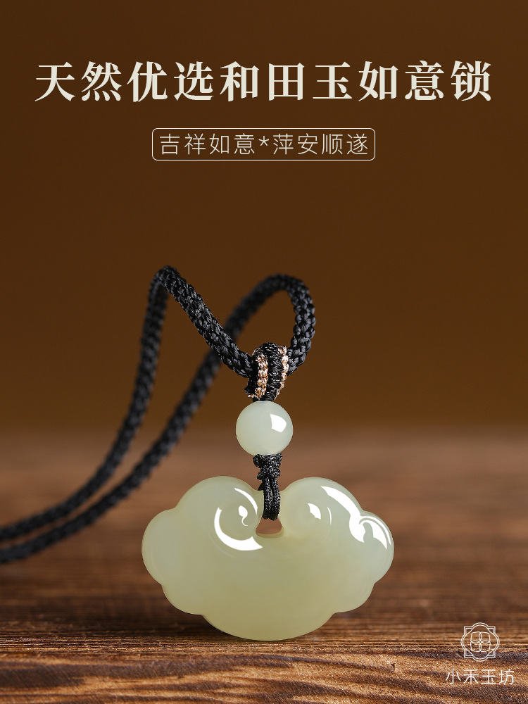天然保真和田玉晴水平安如意錠ペンダント長命錠万事如意児童金玉玉落