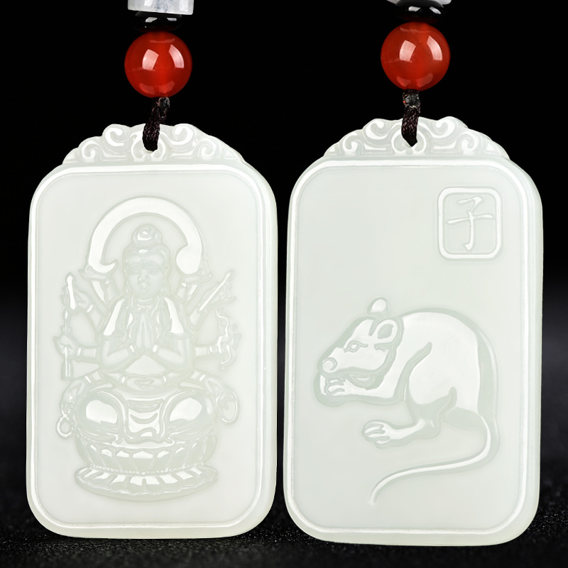 天然和田玉千手観音ペンダント男女肖鼠玉玉佩本命仏守護神天然ペンダント
