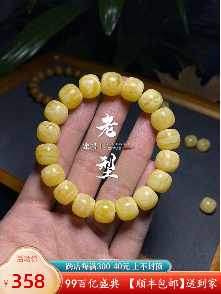 天然ロシアのミツロウの手は蜜の白い花のワックスの琥珀をいっぱいにします。