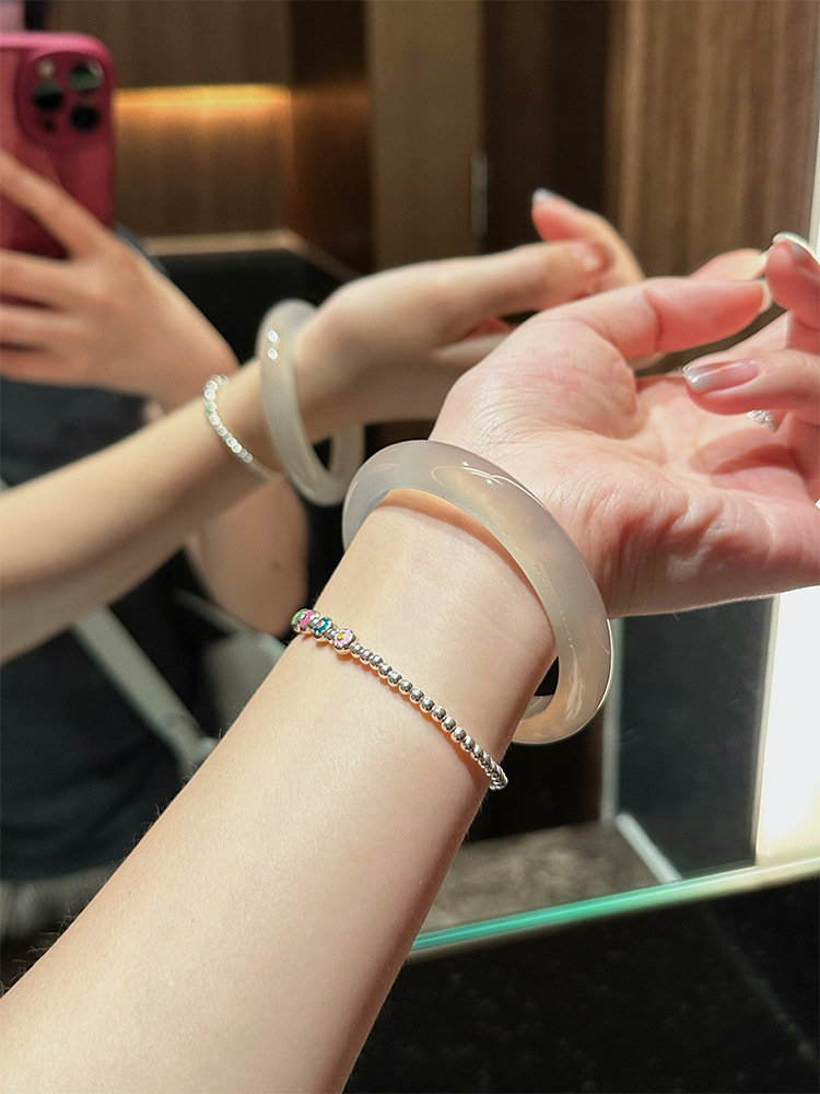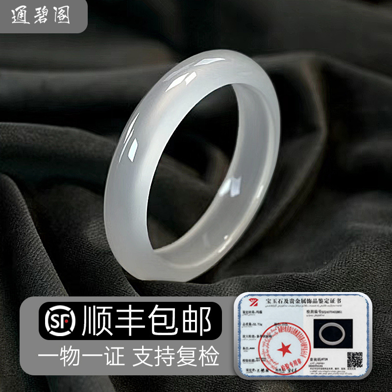 通碧閣瑪瑙ブレスレット女性用氷種白月光玉腕輪高氷透白色玉髄原色